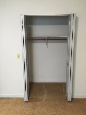 10X13 bedroom with mini blinds in window- large closet space- telephone jacks and cable outlets.