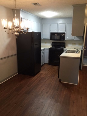 Stove- refrigerator with icemaker- dishwasher- garbage disposal- microwave-dining area with chandelier-more than adequate cabinet space- bar with overhead spotlights and additional storage.